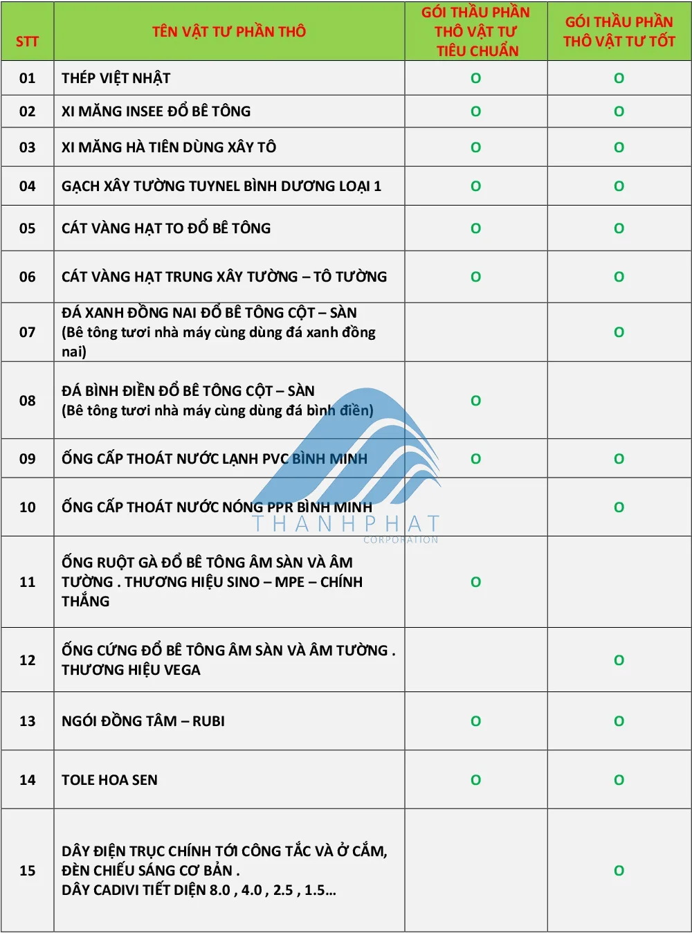 TRONG GÓI THẦU VẬT TƯ PHẦN THÔ