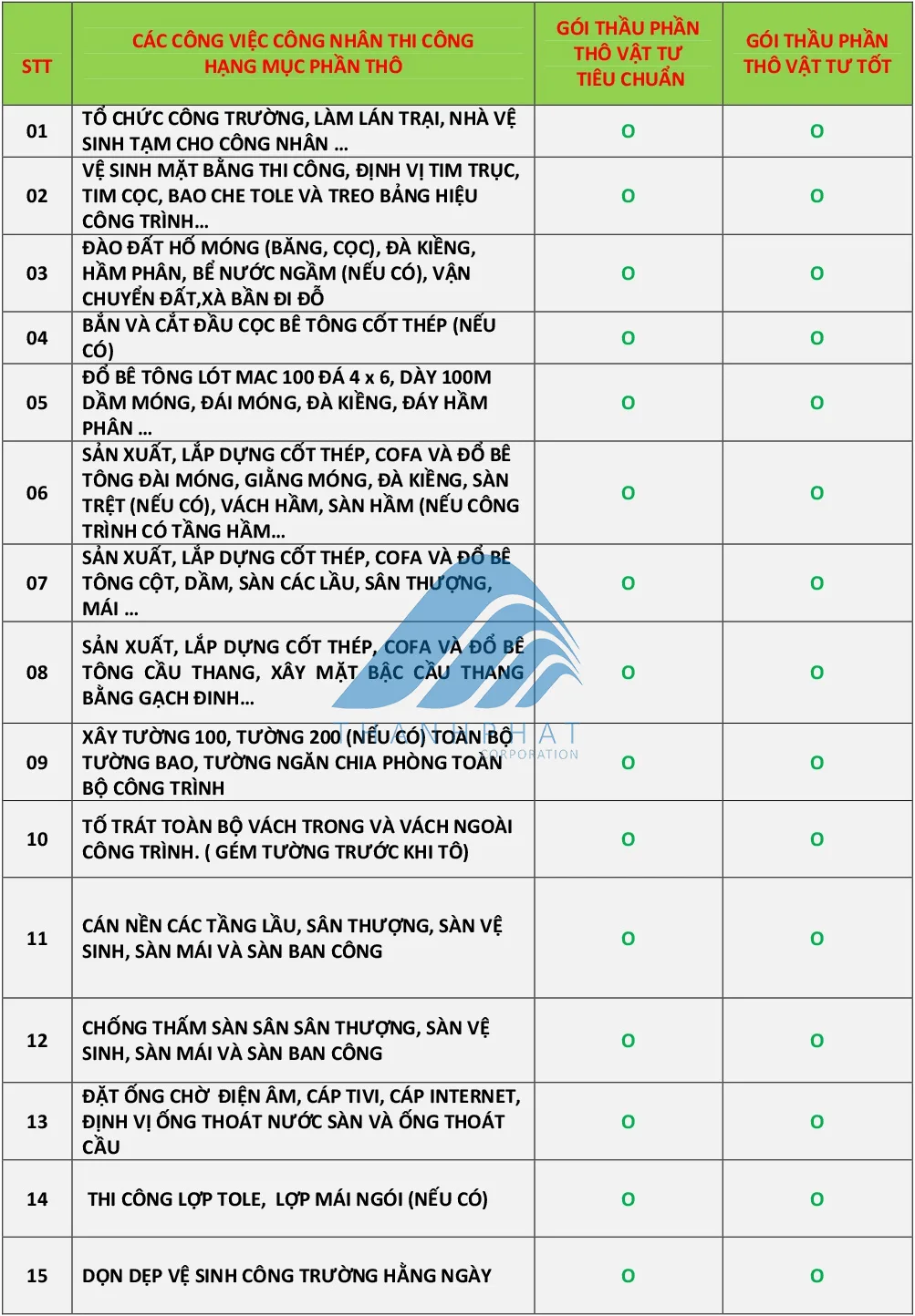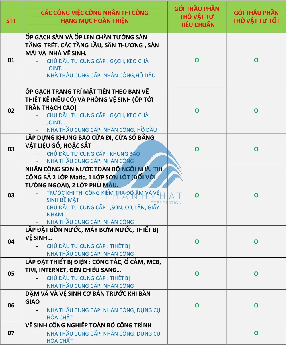 Gói thầu Phần Thô tiêu chuẩn : 3.500.000 VND/m2.