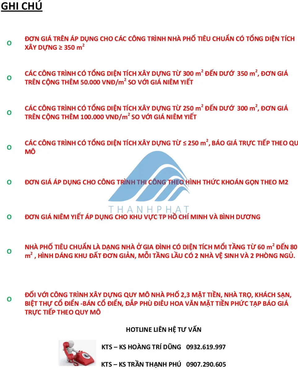 CTY CP ĐT KT XD THẠNH PHÁT ÁP DỤNG GIÁ XÂY DỰNG QUÝ 1/2022